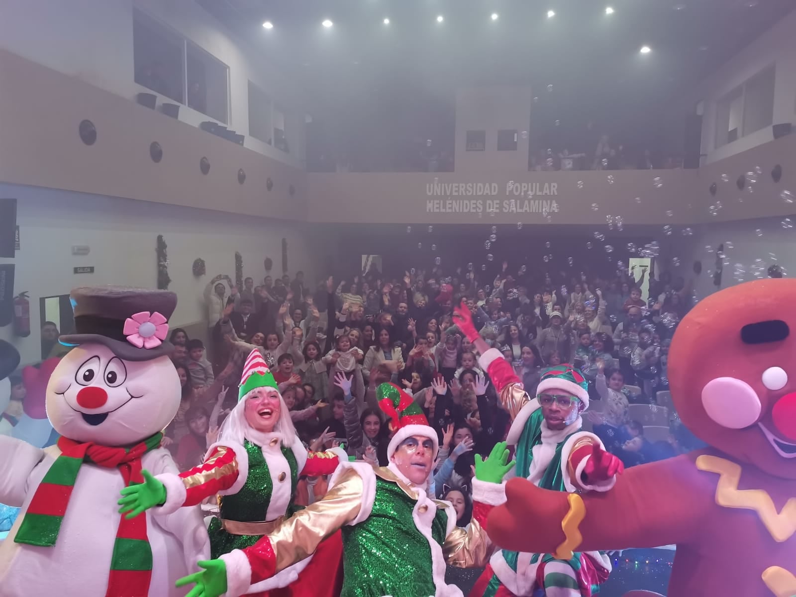Ayer se celebró la Fiesta de la Navidad en la casa de cultura. El salón de actos se quedó pequeño por la gran afluencia de familias que acudieron a esta cita, en la que los niños no pararon de bailar y cantar. Los adultos también han valorado la actividad como acertada y entretenida dentro de las actividades culturales.