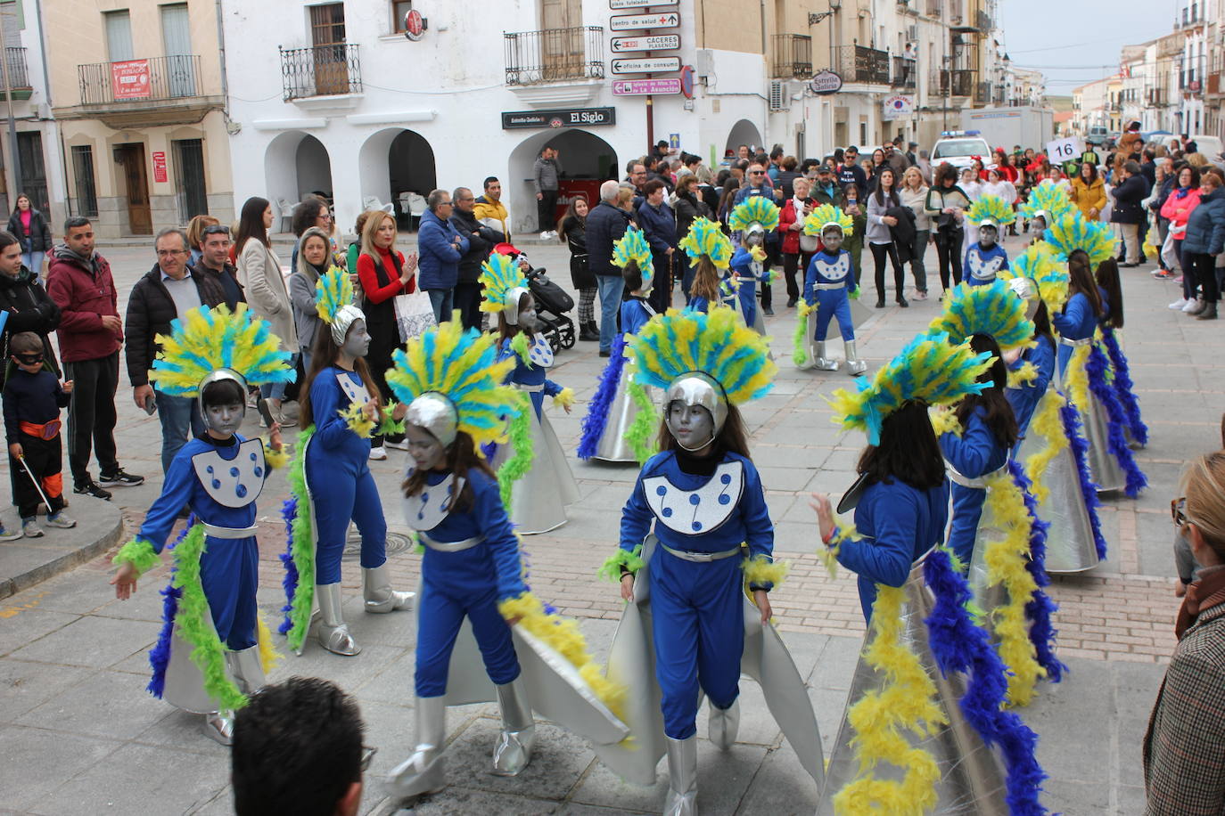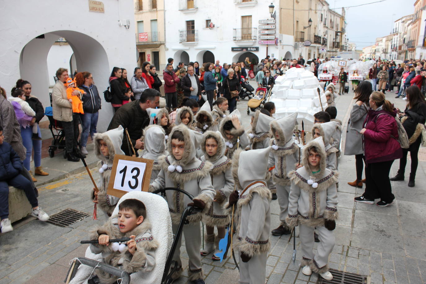 El desfile de comparsas infantil se supera cada año en Casar de Cáceres. Este año contó con 17 grupos inscritos, cuatro más que en la pasada edición. 'Las bolitas de nieve', representadas por niños de tercero de Primaria, fueron las vencedoras de esta edición.