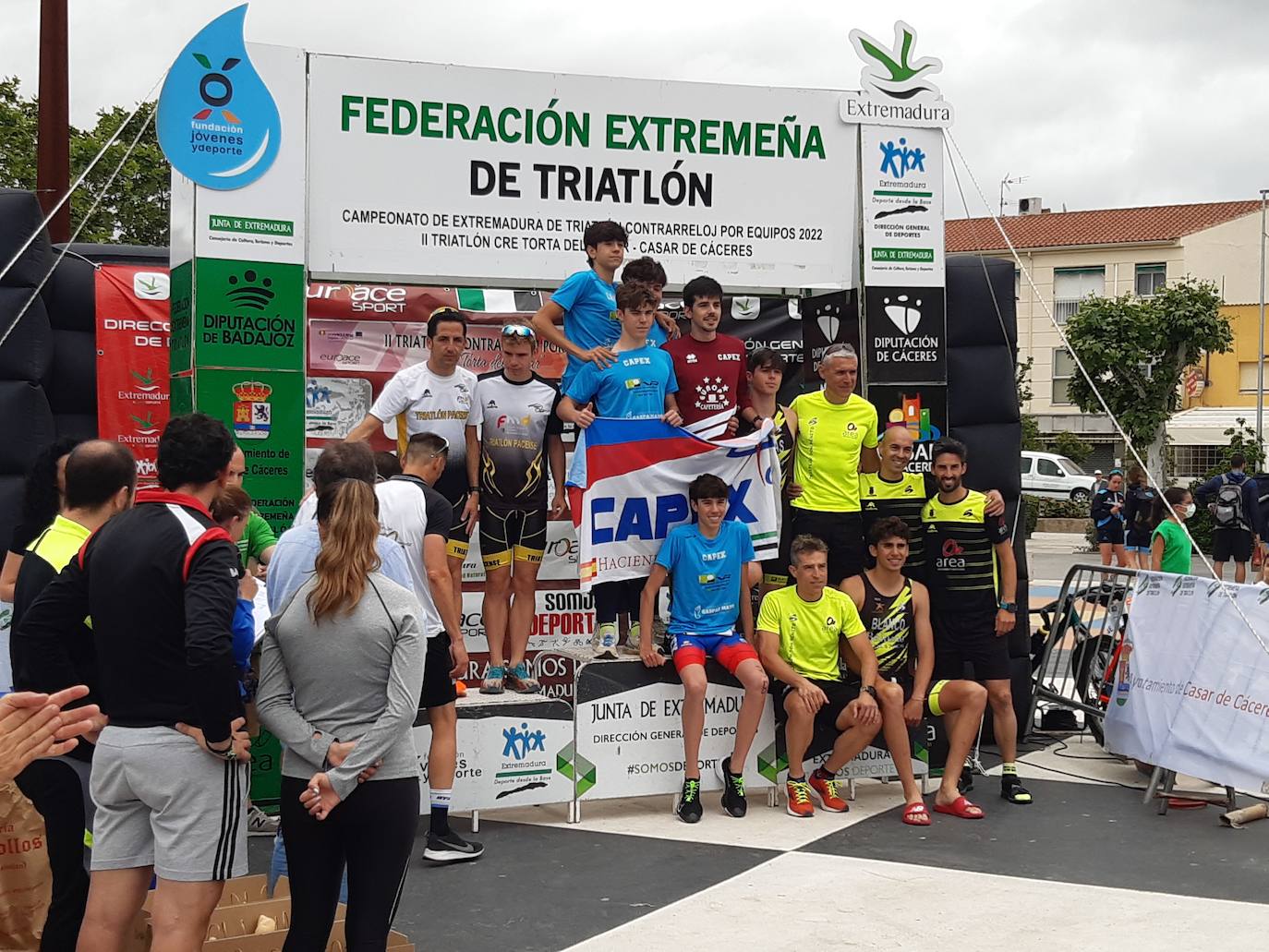 Casar de Cáceres ha vuelto a poner a disposición de la Federación Extremeña de Triatlón, presidida por el casareño José Manuel Tovar, sus circuitos y pantano para el desarrollo de la prueba contrarreloj, en la que han participado 31 equipos, integrado por seis participantes cada uno. El año pasado también se celebró en la localidad.