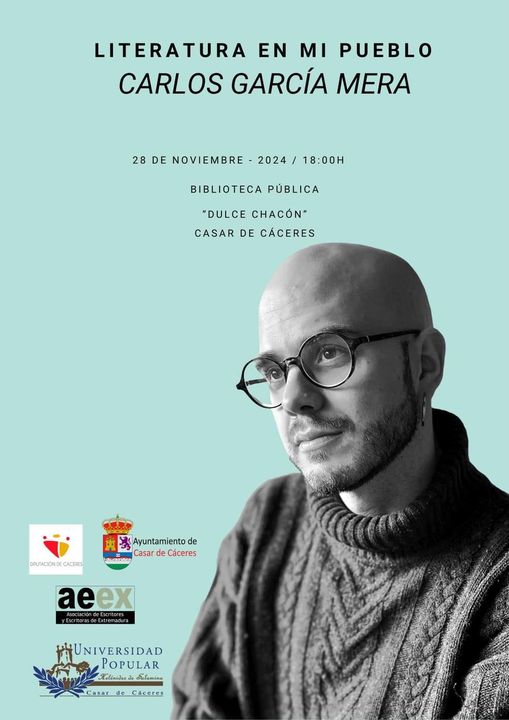 El escritor Carlos García Mera asistirá mañana a un encuentro con los aficionados a la lectura casareños dentro del programa 'Literatura en mi pueblo'. promovido la Asociación de Escritores y Escritoras de Extremadura (AEEX) y la Diputación de Cáceres.