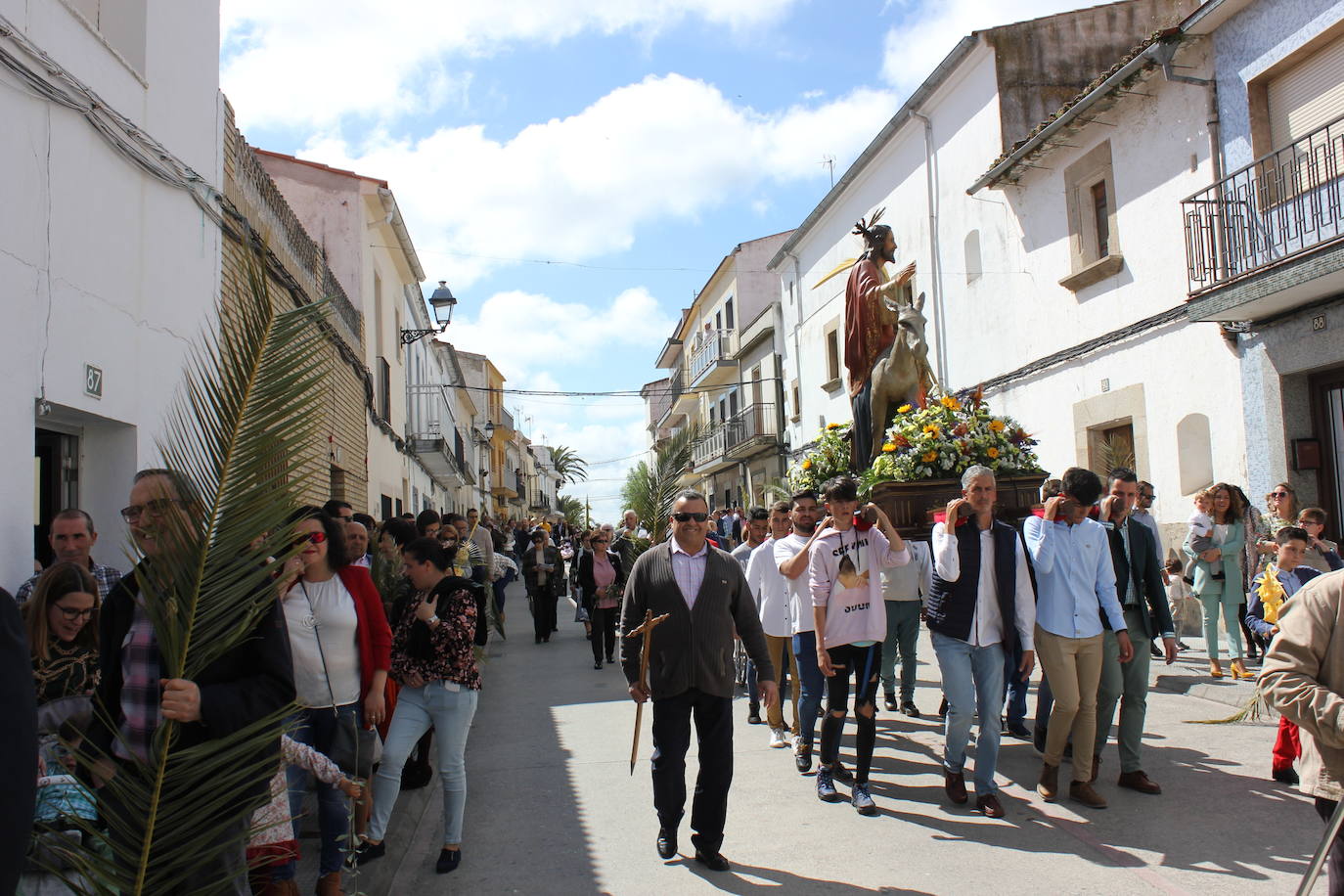 El 10 de abril la imagen de La Burrina volverá a recorrer las calles de la localidad. Tras la misa de las once en San Bartolomé y la bendición de las palmas y ramos de olivo se llevará a cabo la procesión hasta la parroquia. Ese mismo día por la tarde se recuperará la puja de brazos de las imágenes que saldrán en procesión los días de Jueves y Viernes Santo. Tendrá lugar, como era habitual, en el centro parroquial a las seis de la tarde.