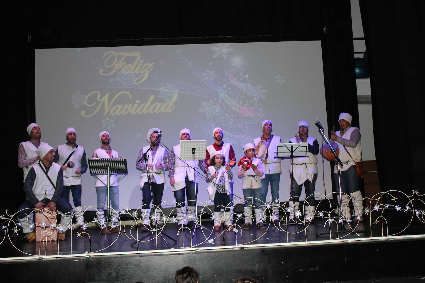 Con sus voces y temas lograron crear un buen ambiente en el salón de actos de la casa de cultura durante dos horas. Al final gran parte de los grupos participantes se volvieron a subir juntos al escenario para cantar algunos de los villancicos más tradicionales, entre ellos, 'Los campanilleros' o 'Voces divinas'.