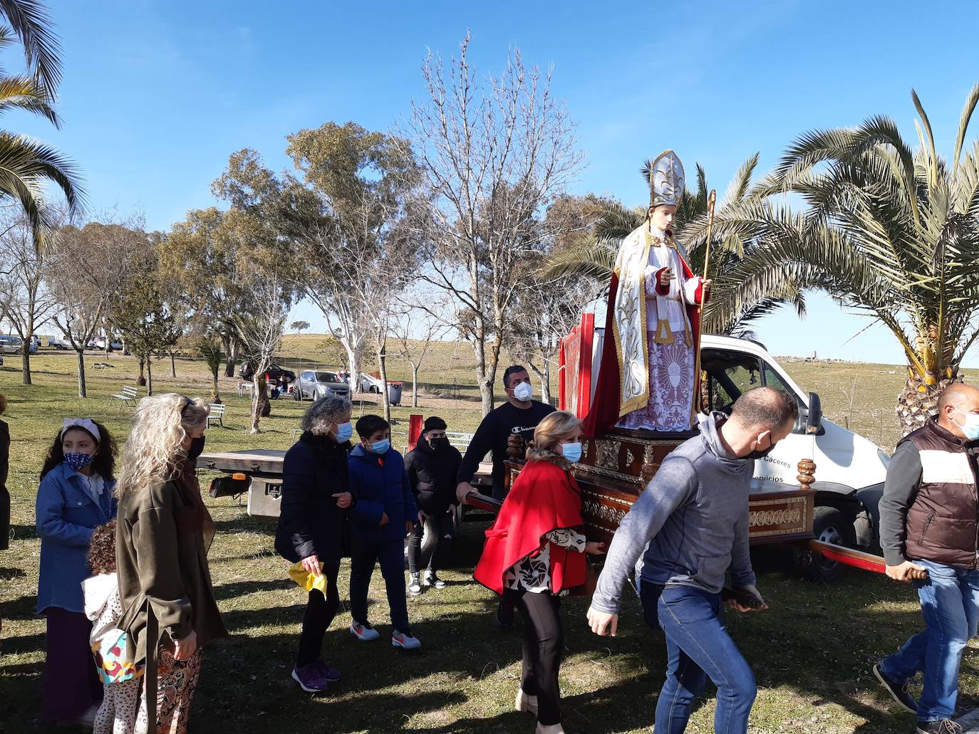 Es la primera romería a la que los casareños acuden tras el inicio de la covid, en la que aún ha sido necesaria el uso de la mascarilla, pese a estar al aire libre. Se han formado corrillos durante todo el día, y muchos han manifestado las ganas de volver a recuperar las tradiciones. Esta vez, ni el mal tiempo ni la covid han impedido acompañar a San Blas.