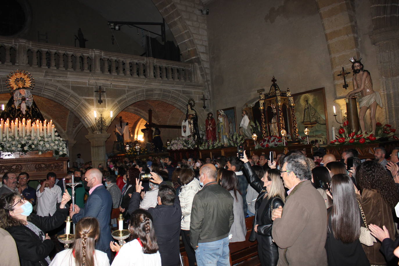 La parroquia se llenó de gente para ver uno de los momentos más especiales de la noche, el de las imágenes alzarse ante la presencia de La Soledad.