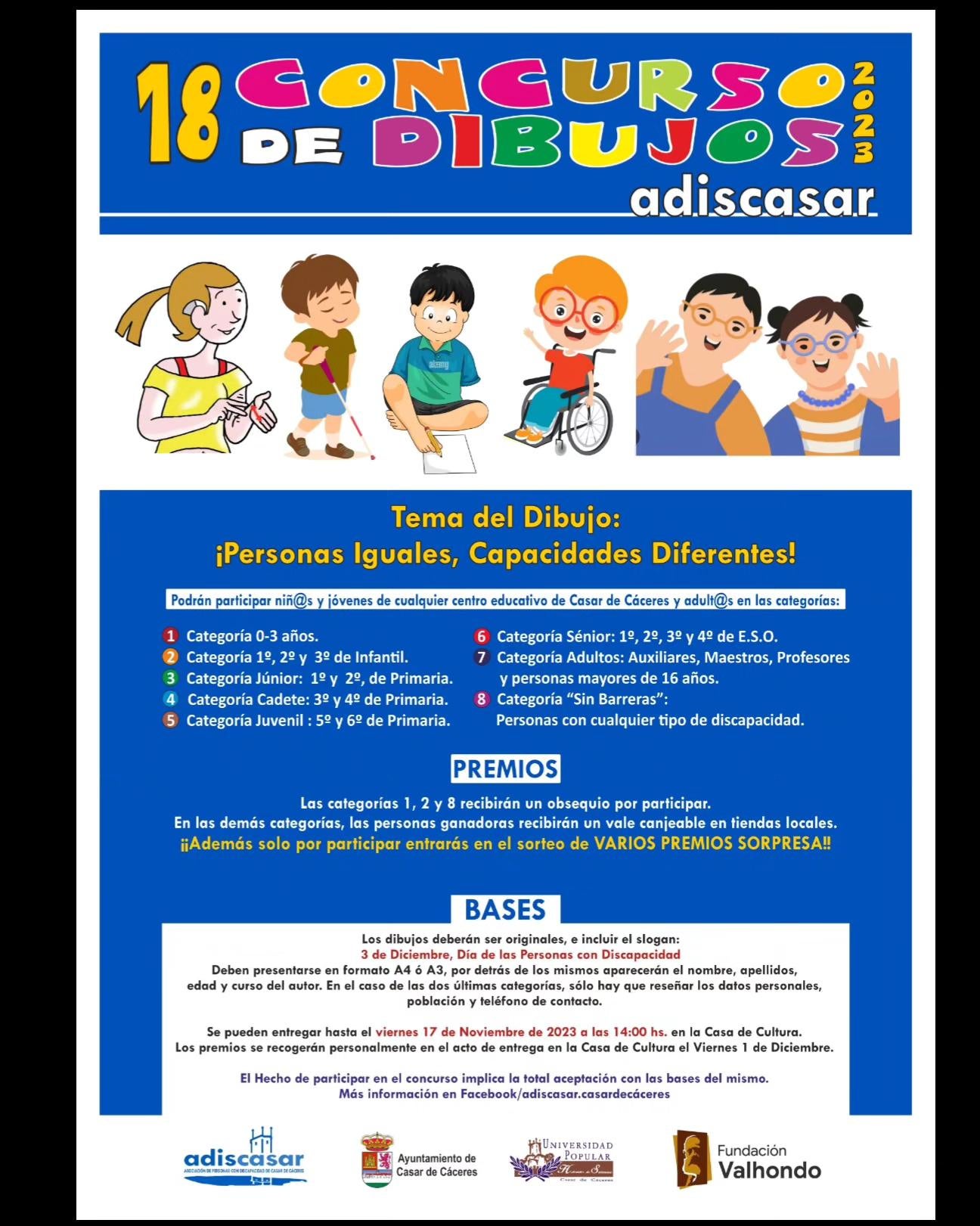 El colectivo casareño Adiscasar ha convocado una nueva edición de su concurso de dibujos, que este año cumple su mayoría de edad. En esta ocasión lo hace bajo el lema 'Personas iguales, capacidades diferentes'.