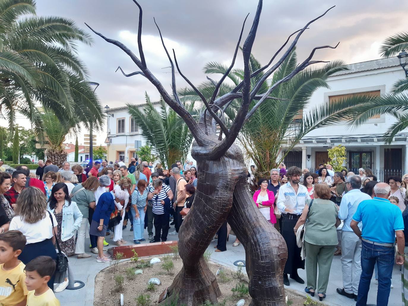 Homenaje a los abuelos de hoy, a los que lo fueron pero ya no están y a los futuros de Casar de Cáceres. El abrazo de dos olivos, Olivio y Oliva, simboliza en la recién estrenada Plaza de Los Abuelos la unión, el amor y la amistad, en una escultura que el actor casareño Santi Senso ideó para este lugar.