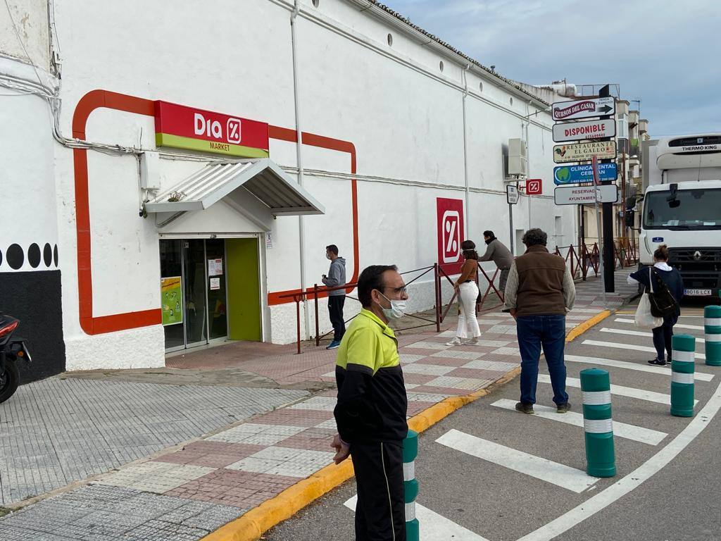 En el Supermercado Día hay momentos en los que se producen colas en la puerta. Los casareños aguardan su turno para poder acceder al interior de este local del Paseo de Extremadura. El máximo de personas al que dejan acceder para comprar al mismo tiempo es de 15. En este supermercado trabajan seis personas, algunos de mañana y otros de tarde. «Esta situación la vivimos como podemos, con miedo y esperemos que pase cuanto antes», indica Montaña Ávalos, una de las propietarias.