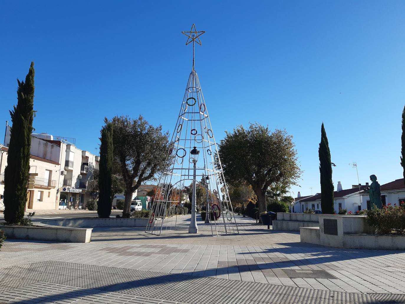 El empresario casareño Marcos Cruz ha donado al pueblo la estructura metálica de un gran árbol navideño que, desde hoy, luce en el Paseo de Extremadura, junto a la estatua de Helénides de Salamina. Tiene 11 metros de altura y más de cuatro de diámetro en su base, y cuenta con dos zonas de acceso a su interior.