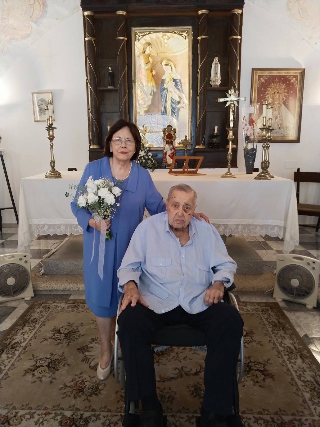 Las bodas de plata, la de los 25 años, también las celebraron en La Encarnación; hace diez años las de Oro las llevaron a cabo en la parroquia de la Asunción y para las de Diamantes lo han vuelto a hacer en la ermita de La Encarnación, con la que mantienen un gran vínculo familiar. «Somos una familia muy católica y unida, en todas esas fechas claves siempre lo hemos celebrado con una misa de Acción de gracias y luego con una fiesta», ha detallado su hija, María del Carmen.