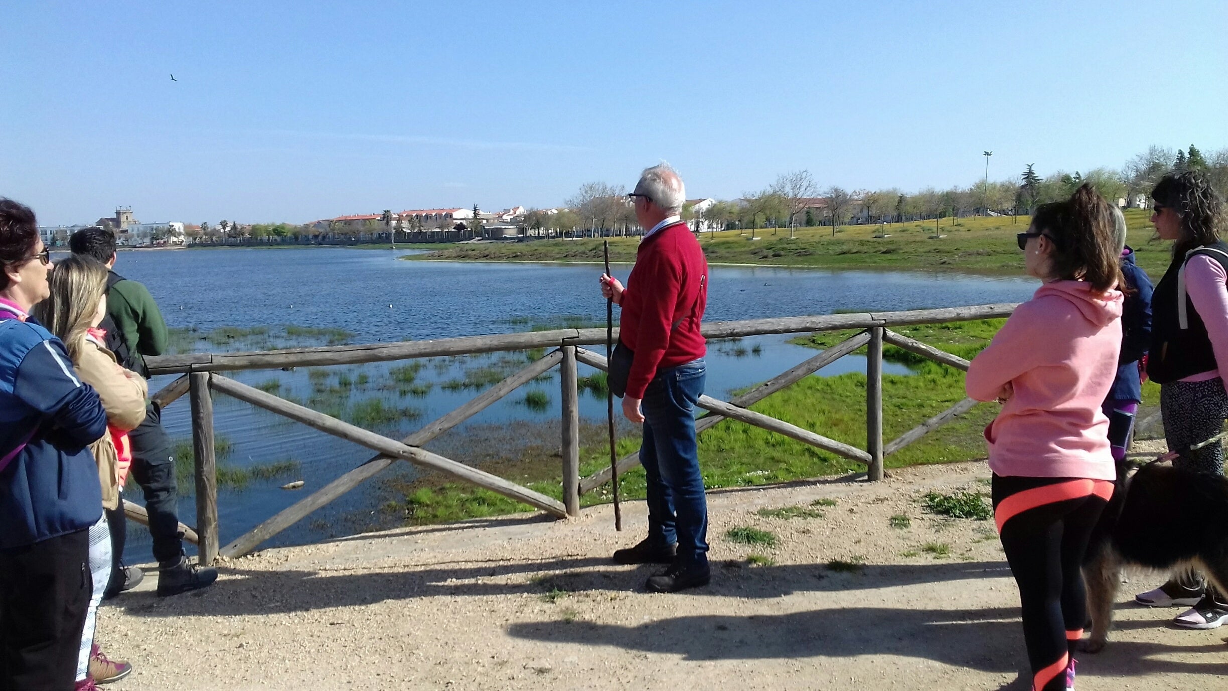 El punto de encuentro fue la fuente grande de El Paseo de Extremadura, símbolo de este lugar. Los primeros pasos se encaminaron a la primera parada del itinerario, denominada como 'Pared de Adrián' (puente de madera de La Charca). Así se le conoce por el ex alcalde Adrián Bermejo Casares, que en la década de los años 40 construyó este muro en un intento de recrecimiento de la Charca. El objetivo era retener más agua en dirección sur.