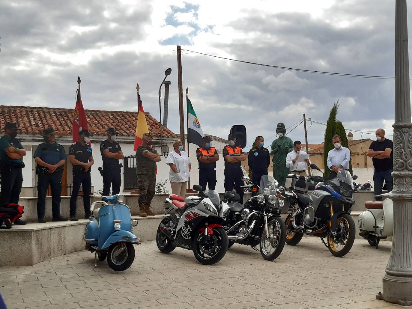 Además del agradecimiento a los profesionales y el recuerdo a los fallecidos, el club motero organizó la recogida de productos no perecederos, que irán destinados al banco de alimentos de la localidad. El alcalde, Rafael Pacheco, expresó su gratitud por este gesto solidario, al tiempo que volvió a hacer público su agradecimiento a cada colectivo que ha luchado para vencer al coronavirus. Recordó que, a día de hoy, hay ocho personas pendientes de recibir el alta epidemiológica y expresó su deseo de que en unos días no haya ni un solo caso.