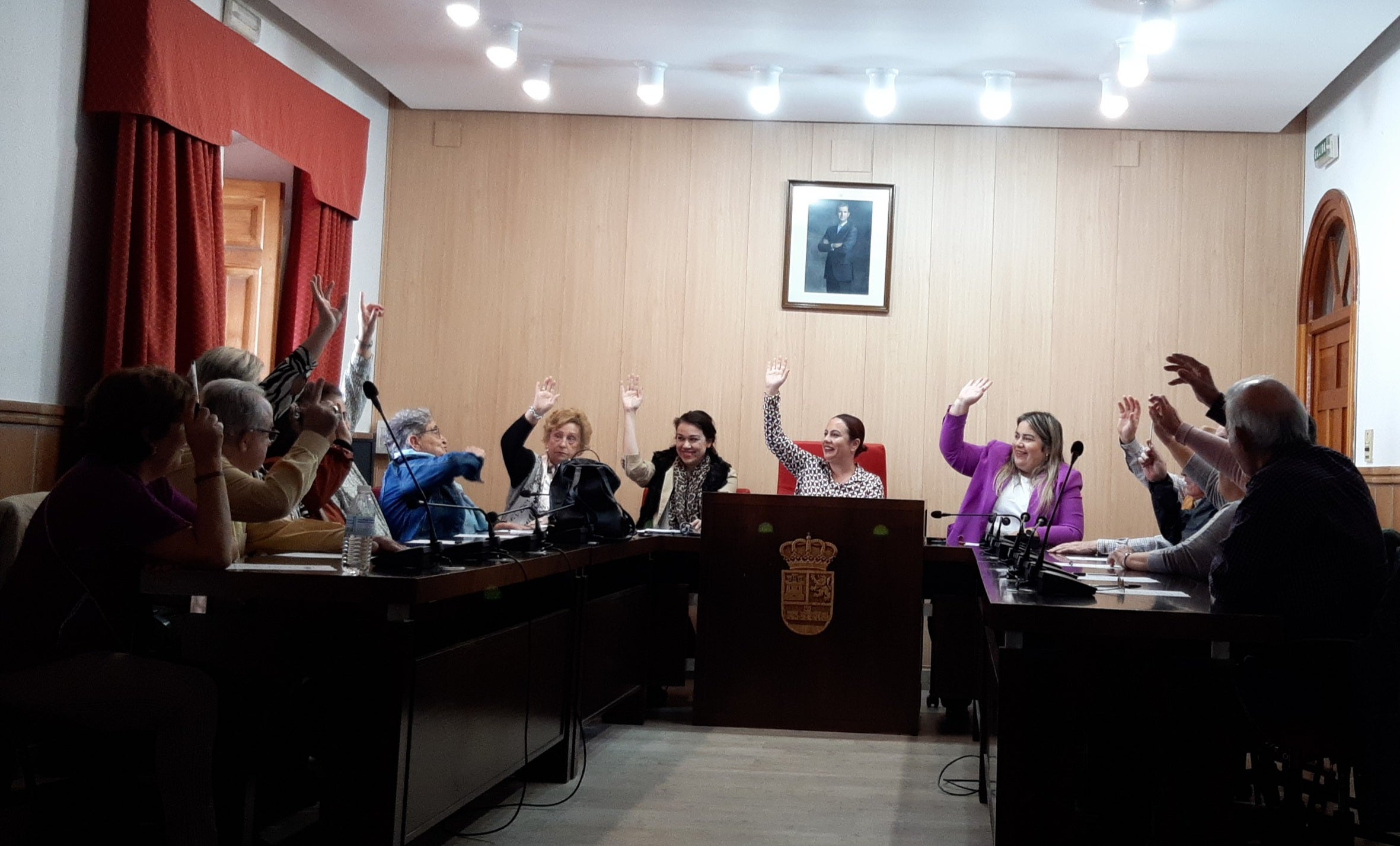 Hoy se ha llevado a cabo el Pleno del mayor. El encuentro ha tenido lugar en el salón de plenos del Ayuntamiento, y en él han participado una docena de personas integrantes de la Asociación de pensionistas del municipio. La sesión ha estado presidida por la alcaldesa, Marta Jordán, acompañada de las concejalas de Obras, Soledad Barrantes, y de Mayores, Sandra Tovar.