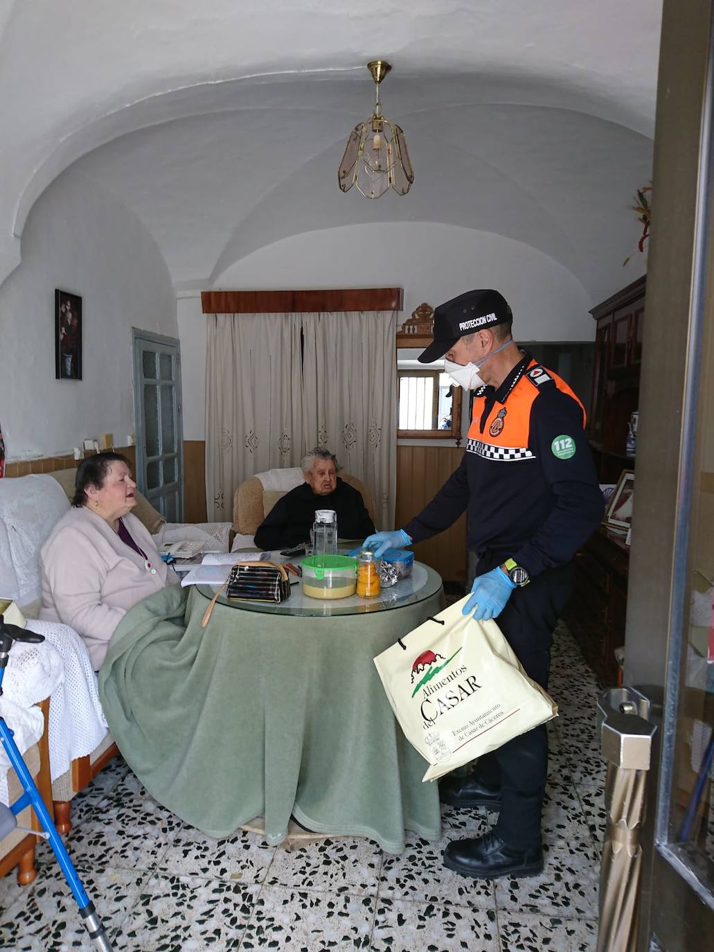 Ahora, la tarea de llevar la comida a casa la hacen entre semana las auxiliares de ayuda a domicilio, y los fines de semana se encargan los voluntarios de Protección Civil. Además de entregar la comida a las personas mayores, quienes acuden a los domicilios a llevar comida comprueban que están bien, ya que no pueden ser visitados por sus familiares en estas semanas de confinamiento.