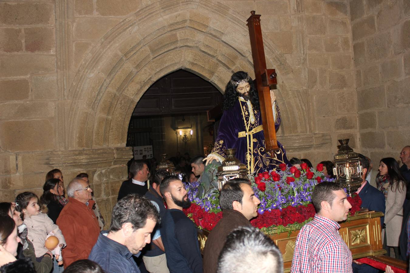 El Nazareno iluminó los ojos de muchos de los presentes nada más salir de la parroquia. Le siguieron durante todo el itinerario numerosas mujeres y niños, quienes realizan sus mandas cada noche de Jueves Santo. El Crucificado y La Piedad también precedieron a La Soledad, la última en salir iluminada con numerosas velas y seguida por decenas de devotas, alguna incluso descalza.