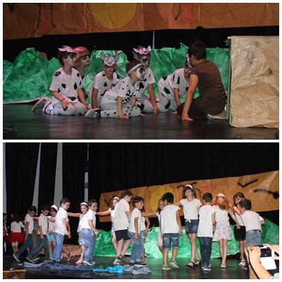 Durante estos días también se han llevado a cabo actividades lúdicas para clausurar el curso. Esta tarde el salón de actos de la casa de cultura estaba repleto de gente. Los niños del segundo y tercer curso de Primaria han llevado a escena el musical del Rey León. Los alumnos, dirigidos por María del Mar Fernández, su maestra de Educación Física que este curso finaliza la sustitución en este centro, han demostrado sus dotes artísticas.