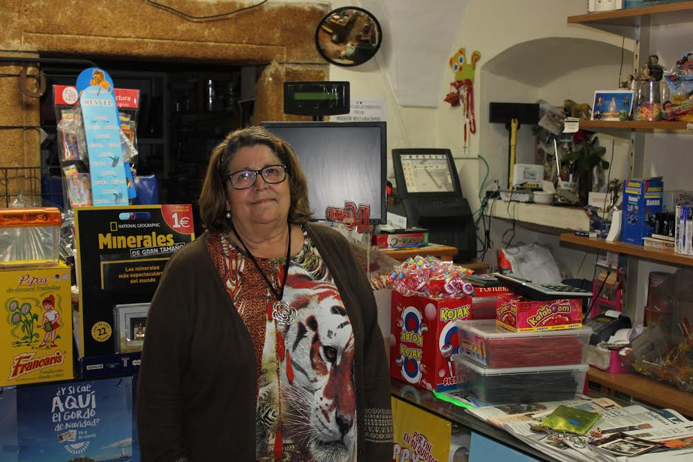 Nací en 1951 y ya tengo los 65 años. Estaba deseando jubilarme. Soy de una generación de currantes. Estudié hasta el Bachiller, en un colegio religioso en Cabezuela del Valle. He hecho de todo desde que era joven, vendía las igualas de Don Ángel el veterinario, he sido telefonista y trabajé en el quiosco de mi padre en la plaza del Ayuntamiento en el que se vendía de todo, navajas, relojes, revistas, de todo un poco. Pero cuando él murió con 47 años al poco tiempo nos trasladamos a nuestra casa y aquí abrimos el negocio los cinco hermanos, y aquí sigue. Mi madre viuda era encargada de la Telefónica, por aquel entonces se manejaba todo con clavijas, era la que daba las entradas y salidas a las llamadas. Ahí también trabajé yo, había gente que nos decía cosas muy graciosas. Y así estuvimos hasta que se automatizó todo. Dos de mis hermanos terminaron trabajando en Telefónica a raíz de esto.