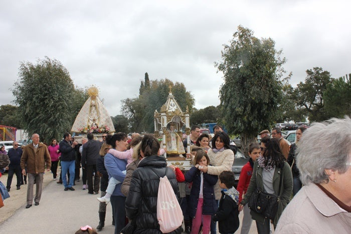 Tras la misa se sacará a la Virgen en procesión, que como siempre estará acompañada por la imagen del Niño. En este encuentro es tradición también que se pujen los brazos por entrar a la Virgen a la ermita.