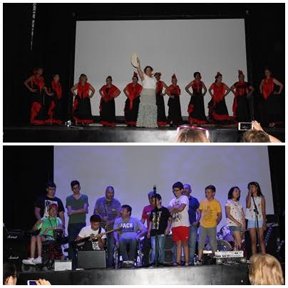 Los primeros en subir al escenario fueron los 14 alumnos de la escuela de rock, quienes interpretaron distintos temas, en grupos, aunque una de ellas, contra el acoso escolar titulada Se buscan valientes, la hicieron en grupo.