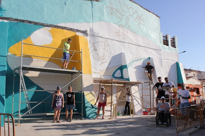 Durante la pasada semana se llevó a cabo el planteamiento de ideas, donde se definió el proceso de creación de la obra final. Estos días se pinta sobre la pared de un vecino, que pretende estar finalizado el próximo jueves, día 28.