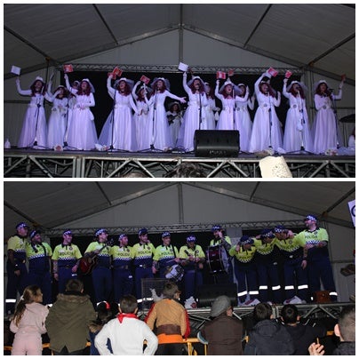 Sin duda, el acto más esperado de la noche eran las murgas. Las primeras en subir al escenario fueron el grupo de novias, las ganadoras. El repertorio de canciones no cesó durante más de media hora. Le cantaron a Susi, propietario del bar en la Plaza de Toros, a Costi por el cierre de su bar de toda la vida, y sacaron a la palestra la gran antena de telefonía instalada en una nave del polígono Cañada Real que ha creado polémica en la localidad.