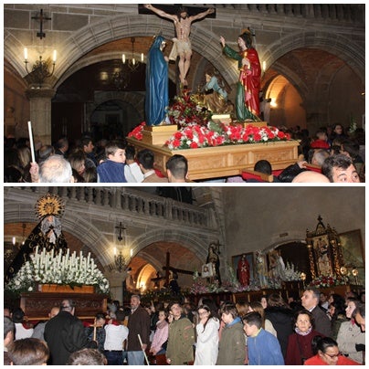 Una noche fría que desprendió del cielo algunas gotas de lluvia, pero que finalmente respetó uno de los desfiles más deseados de la Semana Santa. Las imágenes entraron a la parroquia bajo la atenta mirada de una multitud de personas. El punto final se puso cuando la Virgen de La Soledad hizo acto de presencia, y el resto de pasos se alzaron al mismo tiempo.