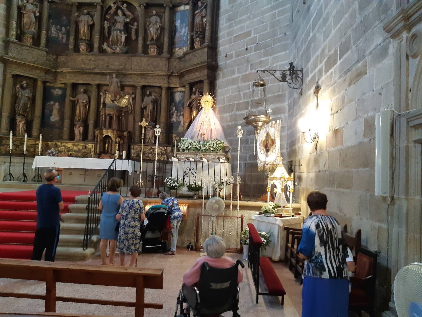 Durante el día de ayer fueron numerosas las personas mayores que acudieron a ver a la patrona. «Vinieron muchos mayores, ellos con sus andadores o en sillas de ruedas ayudados por familiares», cuentan. Hoy también había en la iglesia personas de todas las edades. Máxima, con casi 92 años, disfrutaba hoy mirando atenta a su Virgen. Su hija María cuenta que aunque suelen llevarla a la ermita, hoy también quería estar cerca de ella.