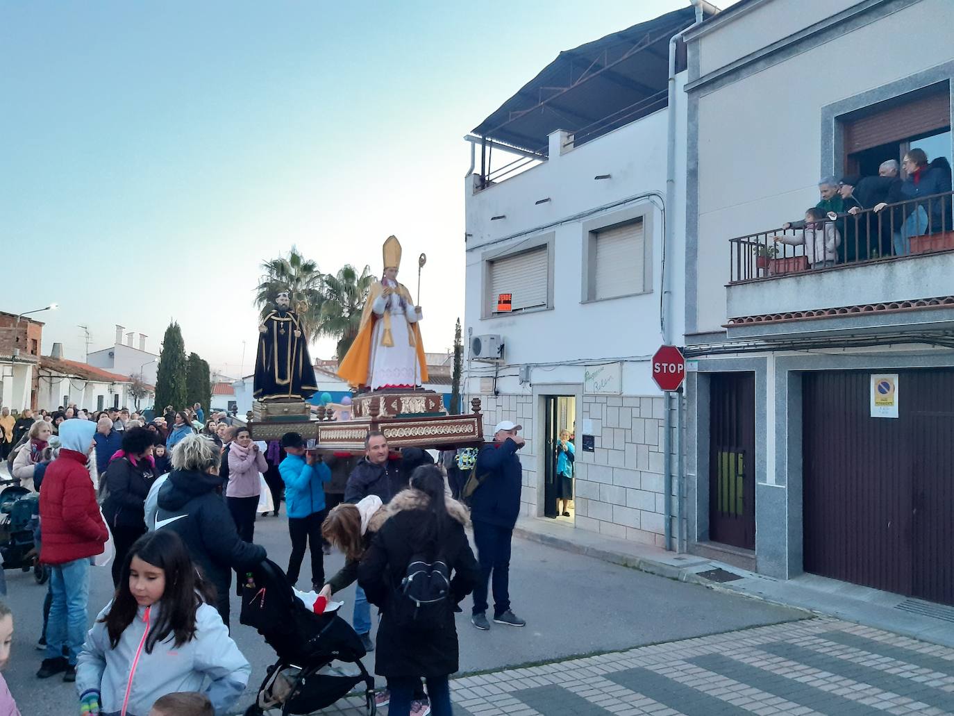 Los patronos pasan por primera vez por las calles San Blas, San Benito y Sanguino a su llegada a la localidad