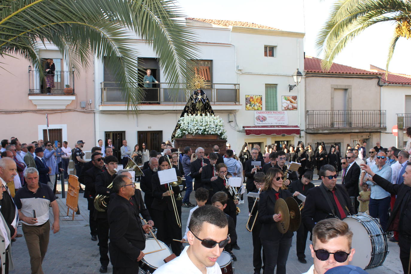 El buen tiempo acompañó ayer a los casareños en sus tradicionales procesiones de Viernes Santo. La primera de ellas, la vespertina del Santo Entierro, en la que no faltaron mujeres ataviadas con mantillas. Las imágenes de la caja de Cristo muerto y La Soledad recorrieron varias calles acompañados de hombres y niños. Por la noche la procesión del Silencio finalizó con la entrada en la ermita de la Virgen de La Soledad. Una gran hoguera iluminó su casa a su llegada. No faltaron las saetas de despedida y el multitudinario canto de La Salve.