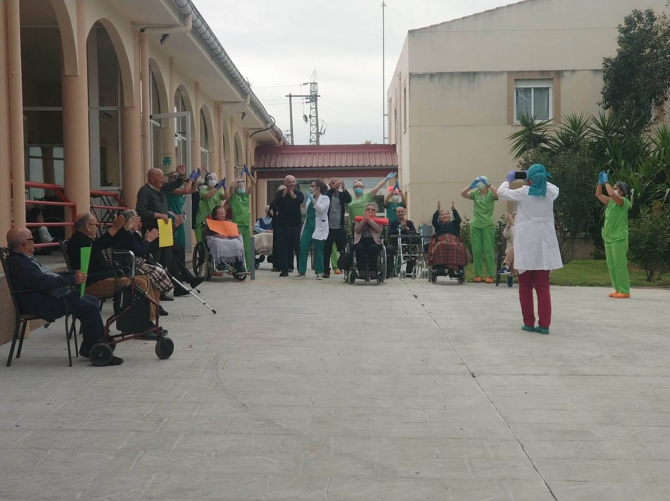 La Policía Local, Guardia Civil y Protección Civil han acudido hoy a aplaudir y homenajear a los 100 residentes y 50 trabajadores de este centro
