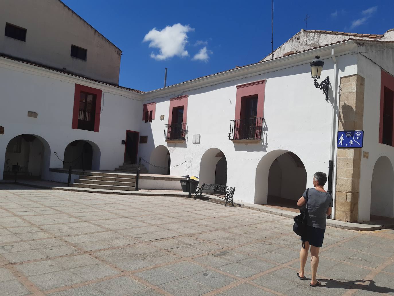 El actual escenario y escalera que da acceso a este edificio municipal se eliminaría, y se instalaría un ascensor. «La plaza quedaría con este cambio más amplia», ha indicado el alcalde, Rafael Pacheco.