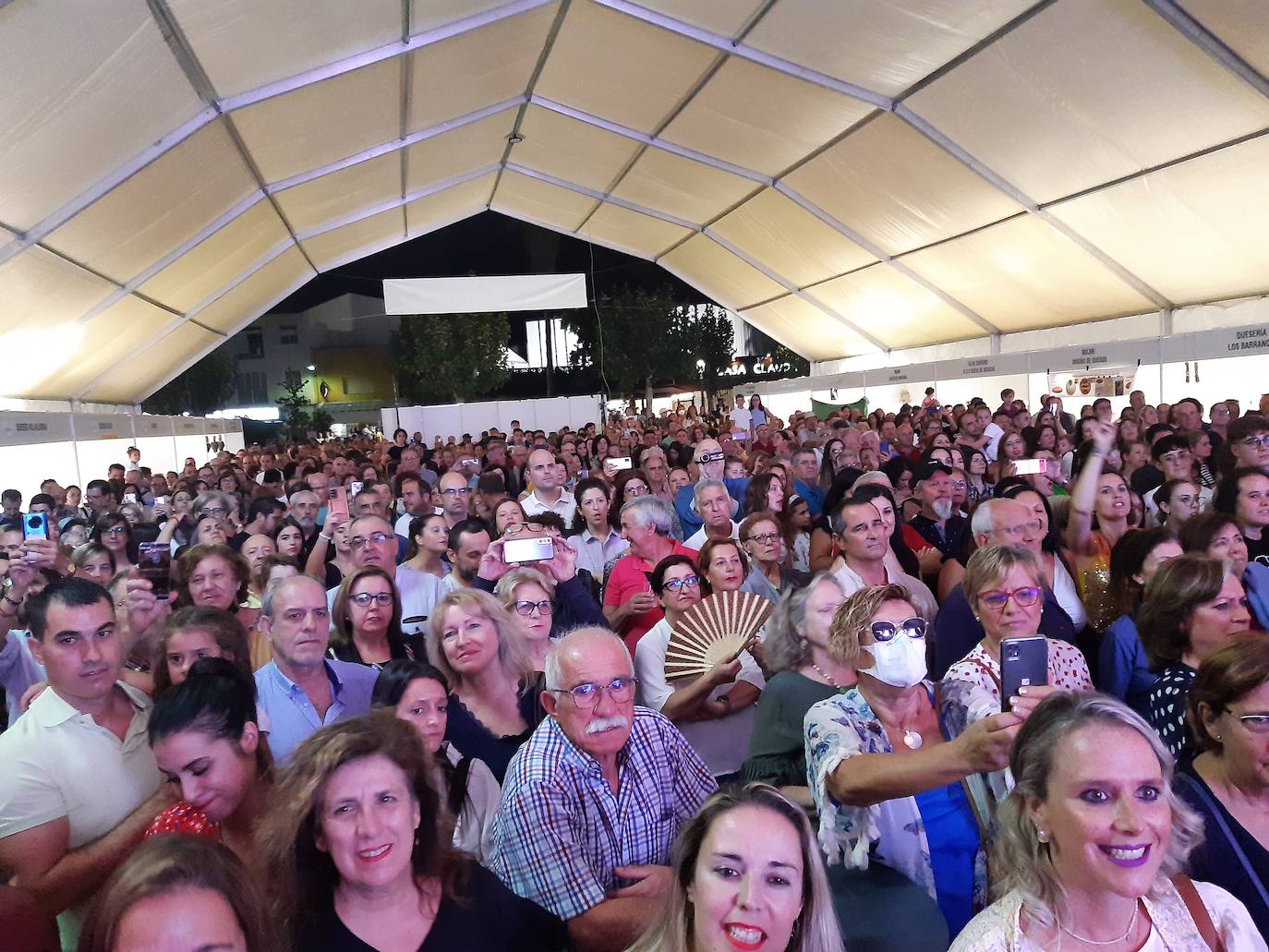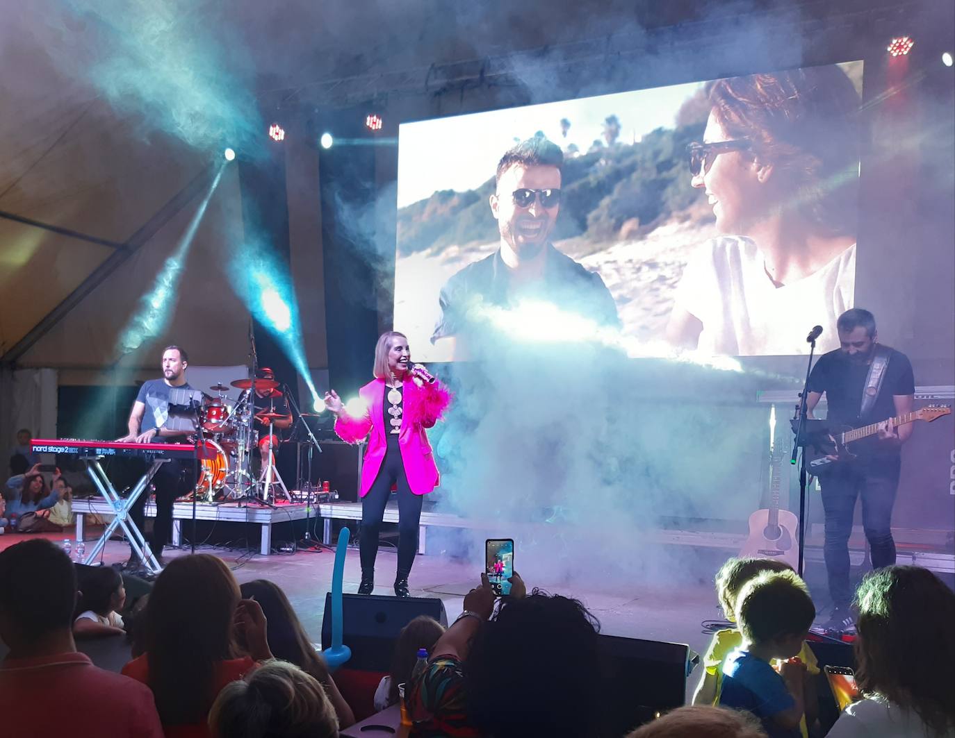 Su repaso a temas de éxito de las décadas de los 70 hasta los 90 hizo vibrar a un público muy entregado y de todas las edades, e incluso se vio sorprendida por la gran presencia de niños que la rodeaban en el escenario. La carpa municipal se quedó pequeña y hubo quienes siguieron la actuación desde fuera de ella.