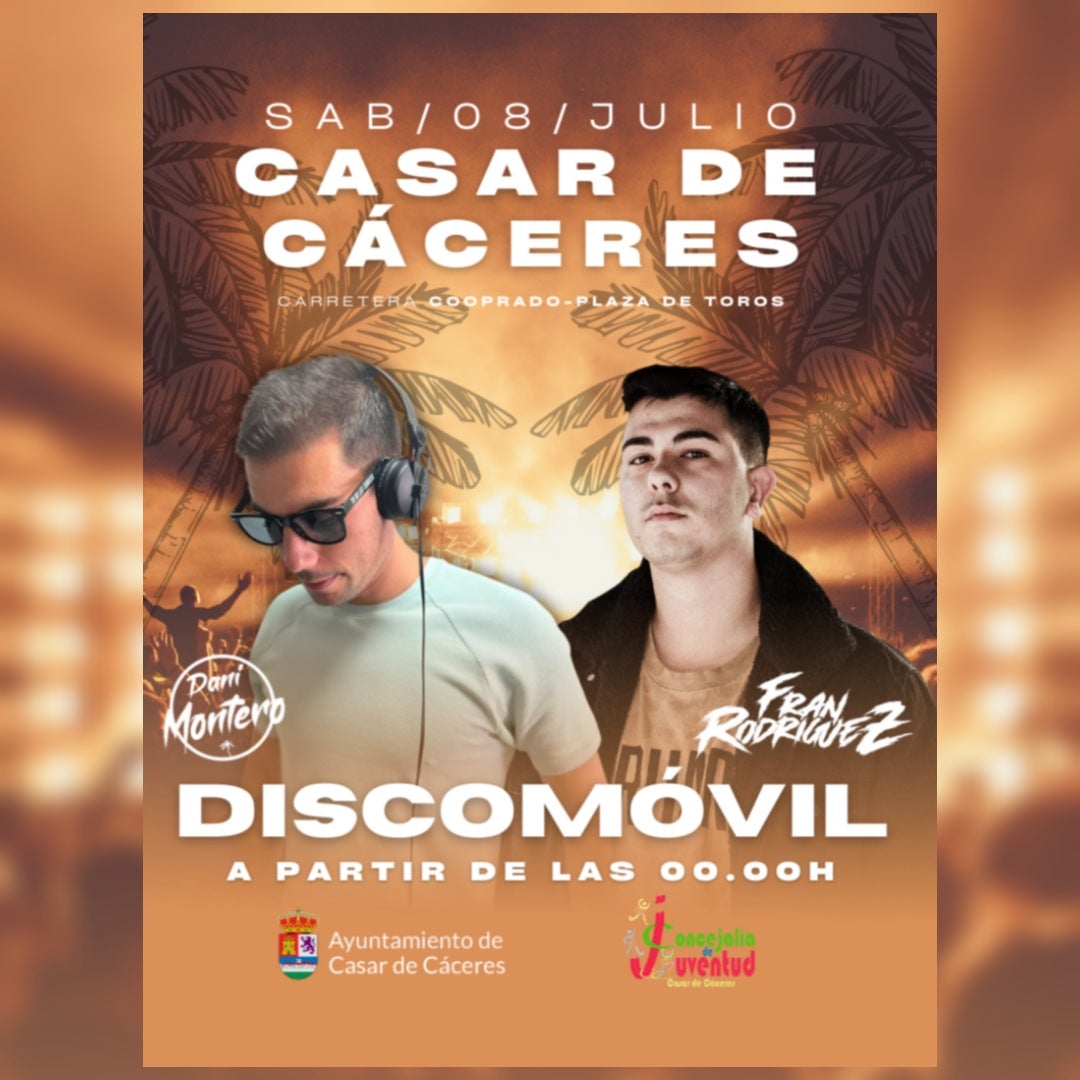 El cartel de la primera discoteca ya se ha publicado. Los dj's Fran Rodríguez y Dani Montero serán los encargados de ambientar la noche al aire libre. Para este sábado se ha escogido como lugar de celebración la carretera de Cooprado al Centro de Ocio. Concretamente el escenario quedará instalado en las proximidades del área de emergencia de basura. «Es una zona amplia y segura para la celebración de este evento», ha expresado el concejal de Festejos, Jaime Carretero.
